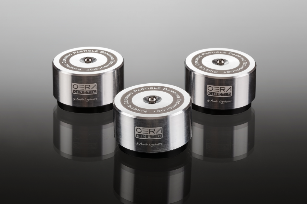 A Cera Kinetic szigetelő lábak rendkívül hatékony termék, amely speciálisan kiválasztott anyagokat és kerámia alapú részecskecsillapító technológiát tartalmaz. Minden Cera Kinetic szigetelőlábak az Audio Engineers egyedi tervezési elveit alkalmazzák, hogy hihetetlen eredményeket érjenek el, és nagy hatékonyságú részecskecsillapítást biztosítanak. A Cera Kinetic szigetelő lábak hatékony 3 dimenziós, 360 fokos axiális és radiális csillapításra képesek, a kerámia alapú részecskecsillapítás pedig a korábbi megoldásoknál hatékonyabb és szélesebb frekvenciatartományú rezgéselnyelést biztosít. A Cera Kinetic szigetelő lábak csillapítják és elnyelik az audioeszközök saját rezonanciáit és rezgéseit a környezetből.