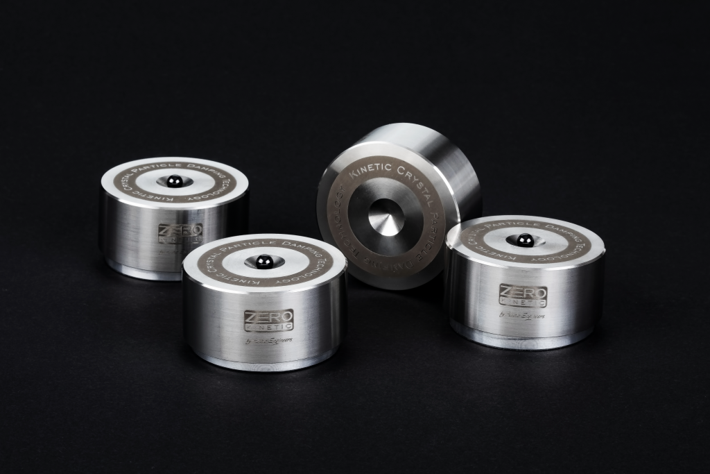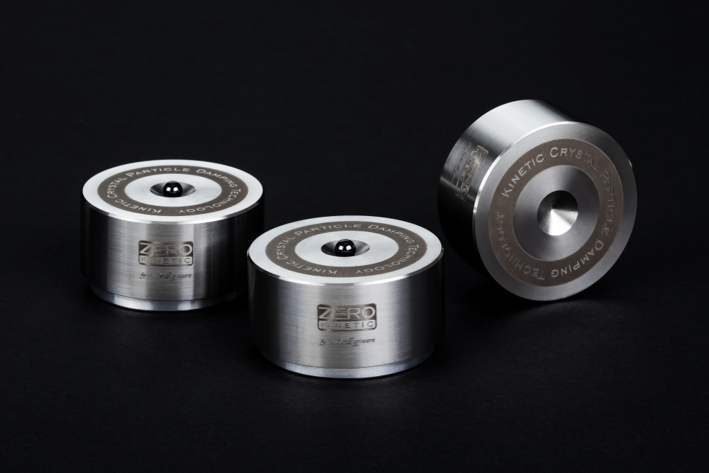 A Zero Kinetic szigetelő lábak hatékony 3 dimenziós, 360 fokos axiális és radiális csillapításra képesek, a részecskecsillapítás pedig hatékonyabb és szélesebb frekvenciatartományú rezgéselnyelést biztosít, mint a korábbi megoldások. A nulla kinetikus szigetelő lábak csillapítják és elnyelik az audioeszközök saját rezonanciáit és rezgéseit a környezetből. A Zero Kinetic izolációs lábak az űrtechnológiában és a fejlett repülőgépgyártásban használt anyagok és technológiák rendkívül hatékony kombinációja. A Zero Kinetic szigetelő lábak külső háza nem mágneses, kiváló minőségű, nagy szilárdságú rozsdamentes acélból (HSLA) és speciális alumínium-magnézium ötvözetből készült, ultranagy pontosságú CNC megmunkálással.