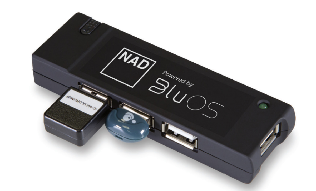 smerd meg a BluOS Upgrade Kit-et – egy kis eszközt, amely egyszerűen csatlakozik a VM 130 vagy VM 300 MDC modullal felszerelt BluOS Ready NAD komponens USB-bemenetéhez és lehetővé teszi, hogy egyetlen könnyen használható alkalmazással streameld zenéidet. Miután beállítottad és csatlakozik a Wi-Fi hálózathoz, egyszerűen használhatod az okostelefonhoz, táblagéphez, asztali számítógéphez készült BluOS Controller alkalmazást veszteségmentes zenék streamelésére és vezérlésére, vagy csoportosíthatsz más BluOS-kompatibilis eszközökkel, például vezeték nélküli hangszórókkal.