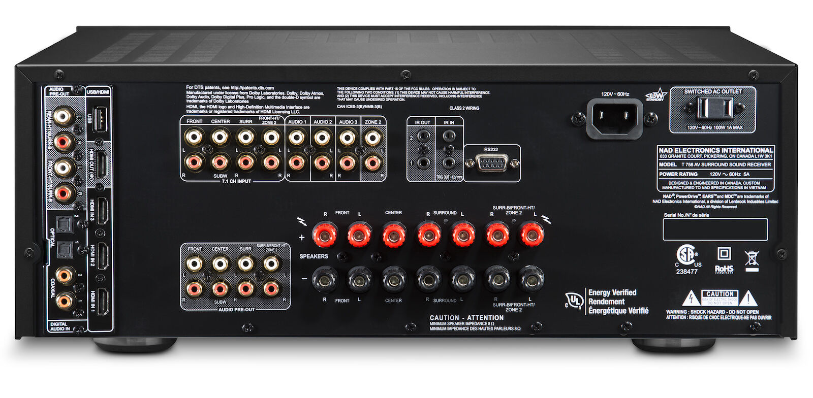A T 778 a NAD Hybrid Digital technológiájának legújabb fejlesztéseivel 9 nagy áramú és nagy teljesítményű erősítőcsatornát kínál javított hatásfokkal. A NAD új AV vevőerősítője a szokványos FTC előírás szerint 9x 100W, a márka „Full Disclosure Power (FDP)” azaz teljes teljesítmény-besorolási megközelítésével 9x 80W teljesítményt biztosít az összes csatornát egyidejűleg meghajtva, teljes sávszélességen a névleges <0,08% THD torzítás mellett mérve. A rugalmasság érdekében az erősítőcsatornák konfigurálhatók térhangzás vagy második zóna hangjának előállításához.